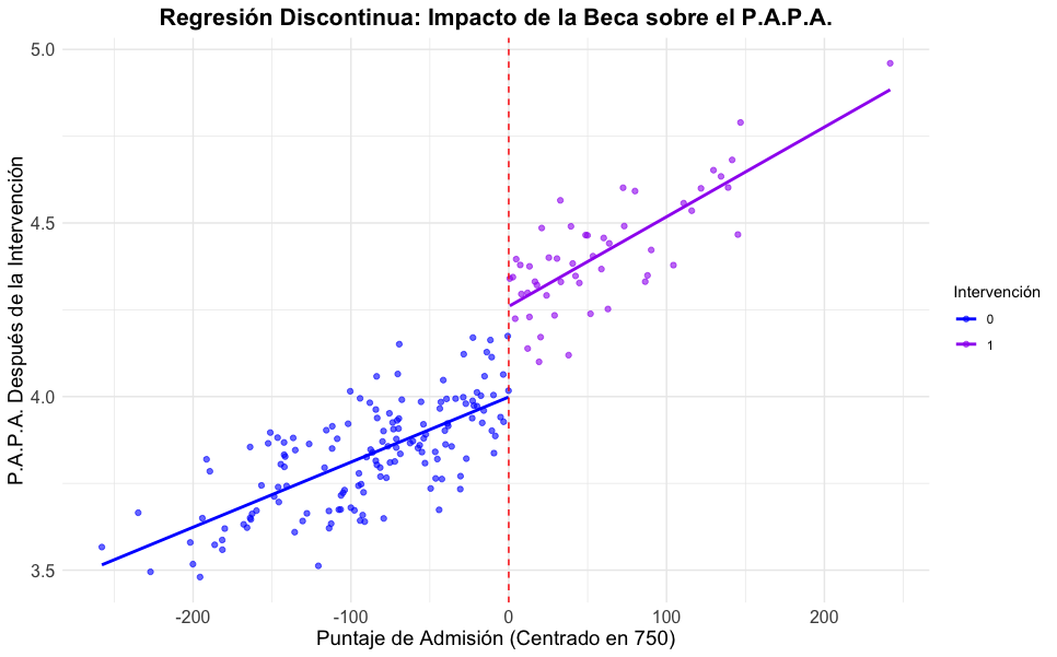 Diseño de Regresión Discontinua | - Estimar impacto cuando hay un punto de corte claro para recibir el tratamiento. | - Alta validez interna en torno al punto de corte. - Permite inferencias causales locales. |