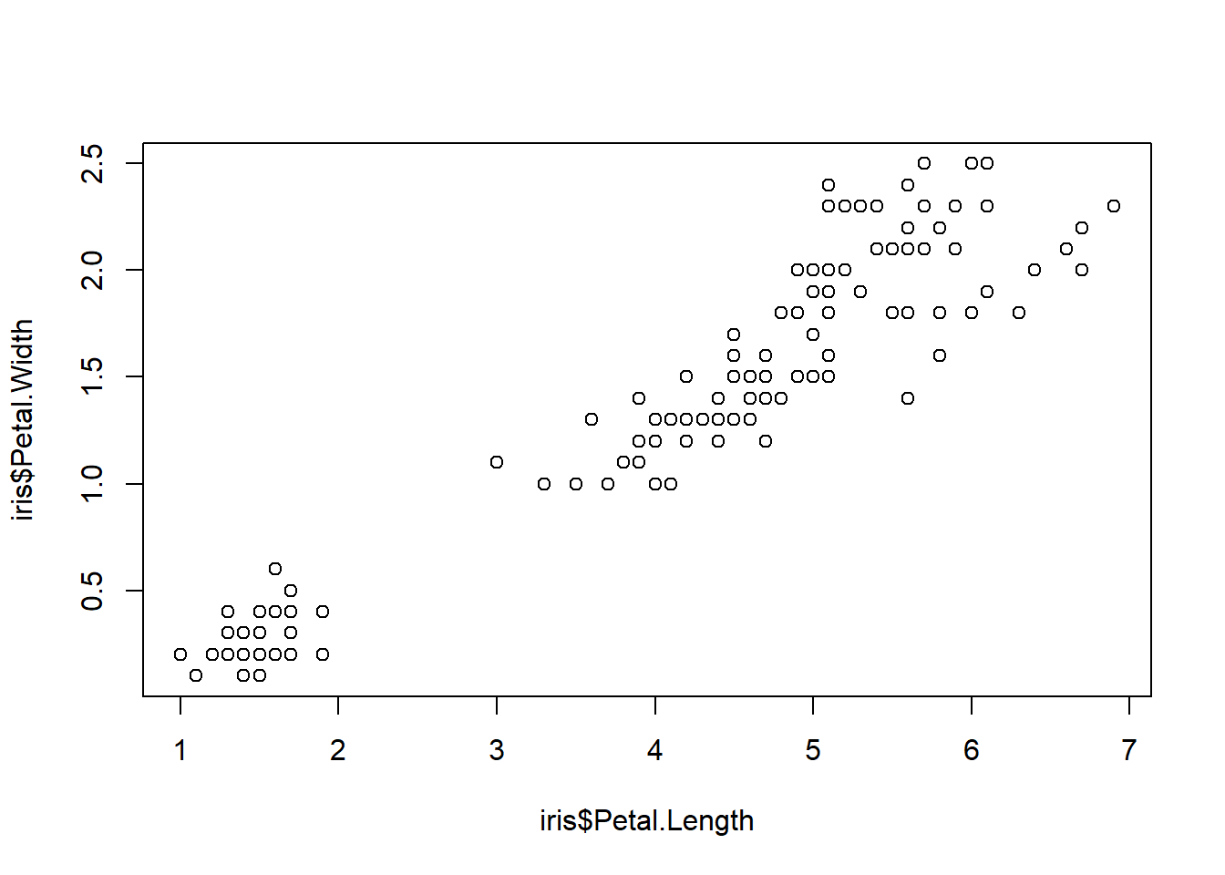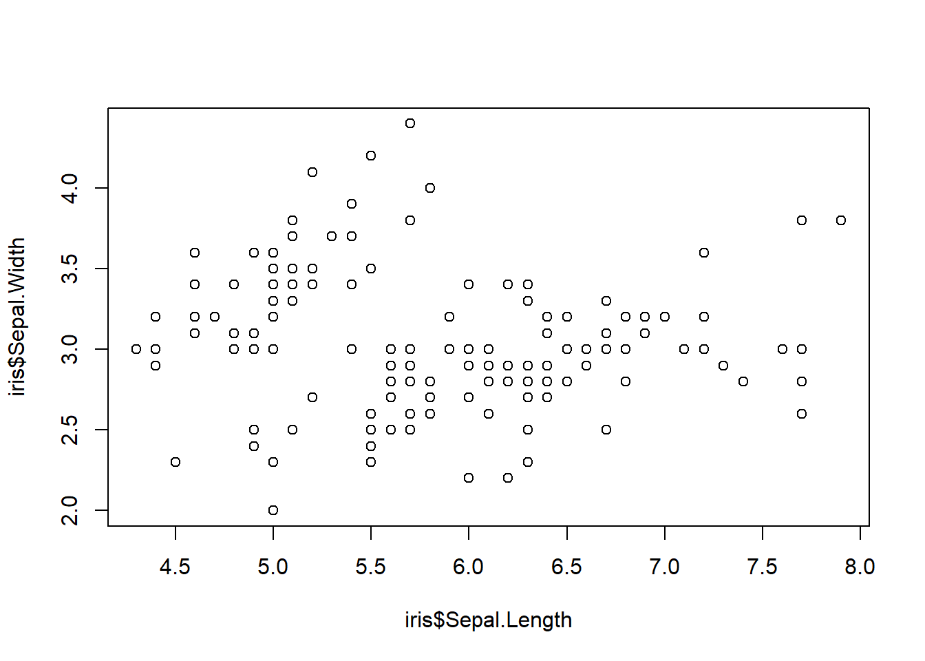 plot(iris$Sepal.Length,iris$Sepal.Width)